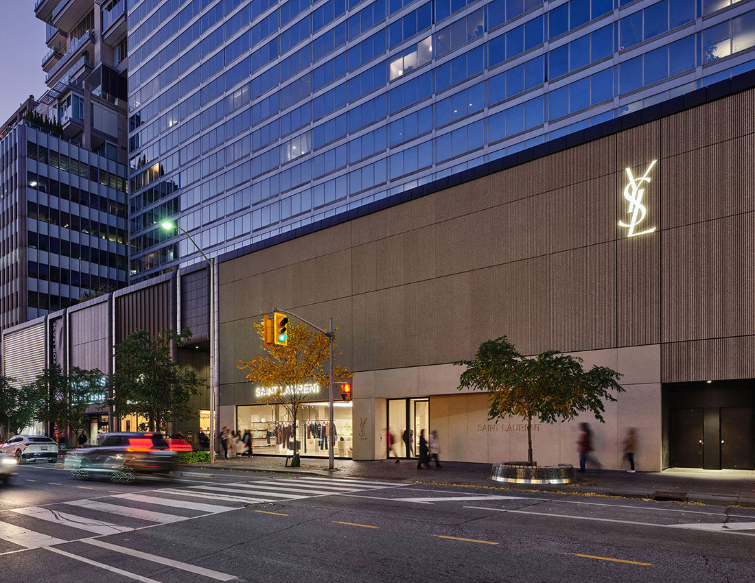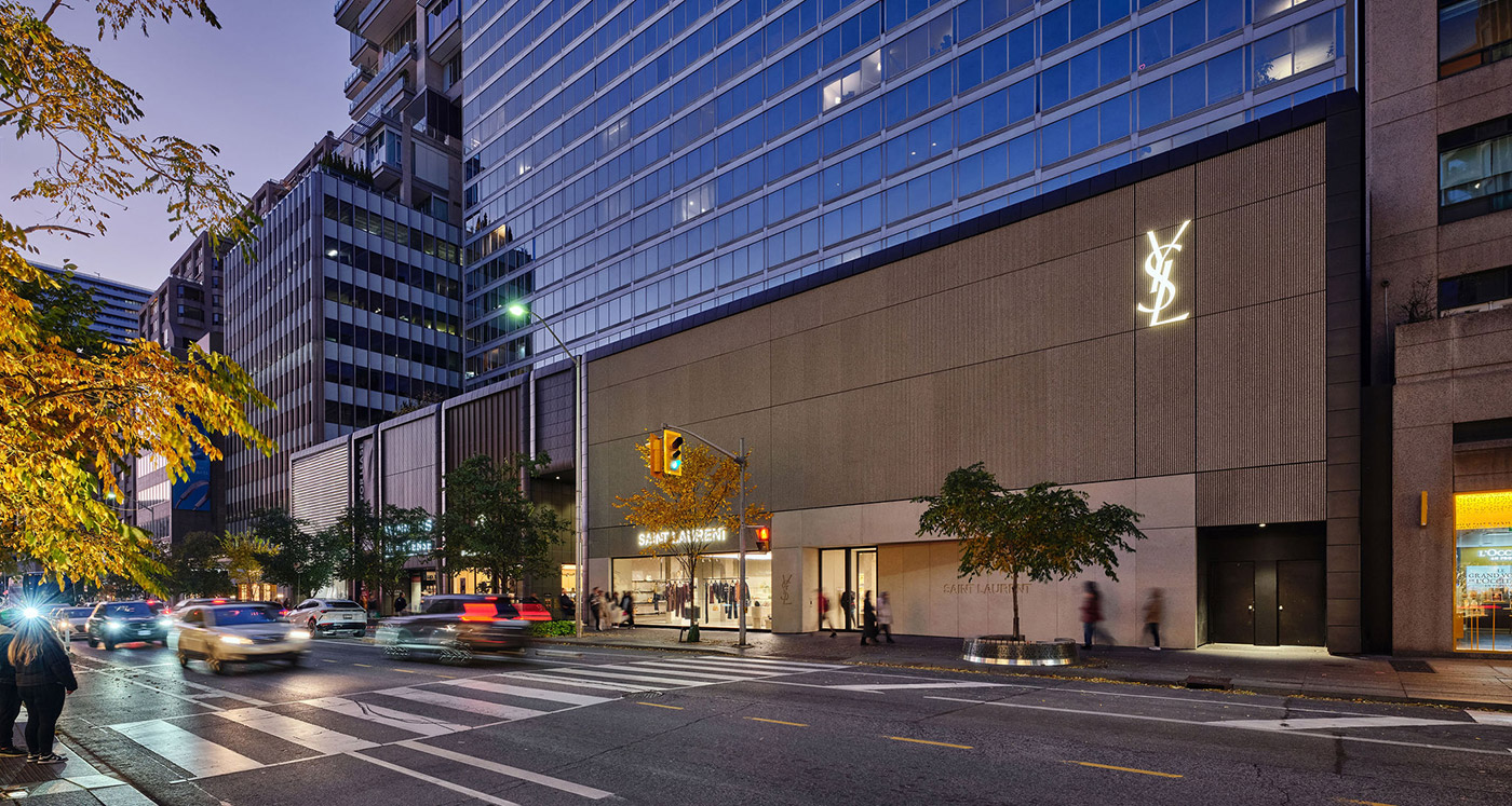 Located in Toronto’s Mink Mile, 110 Bloor Street West had extensive façade upgrades completed in 2024, as designed by UNStudio. The building is home to prestigious tenants, including high-end fashion brands like Saint Laurent and Alexander Wang, as well as dining options such as Paris Baguette, Mandy’s Salads, and Starbucks. The lower concourse level has wellness and lifestyle experiences, including Othership, Jaybird, and F45 Training.
